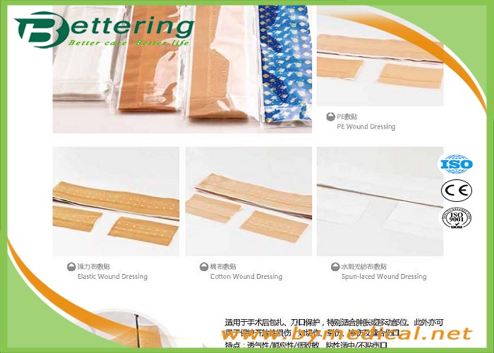 1) Covered with ventilated polyethylene anti-adherent film to prevent the bandage from sticking to wound.